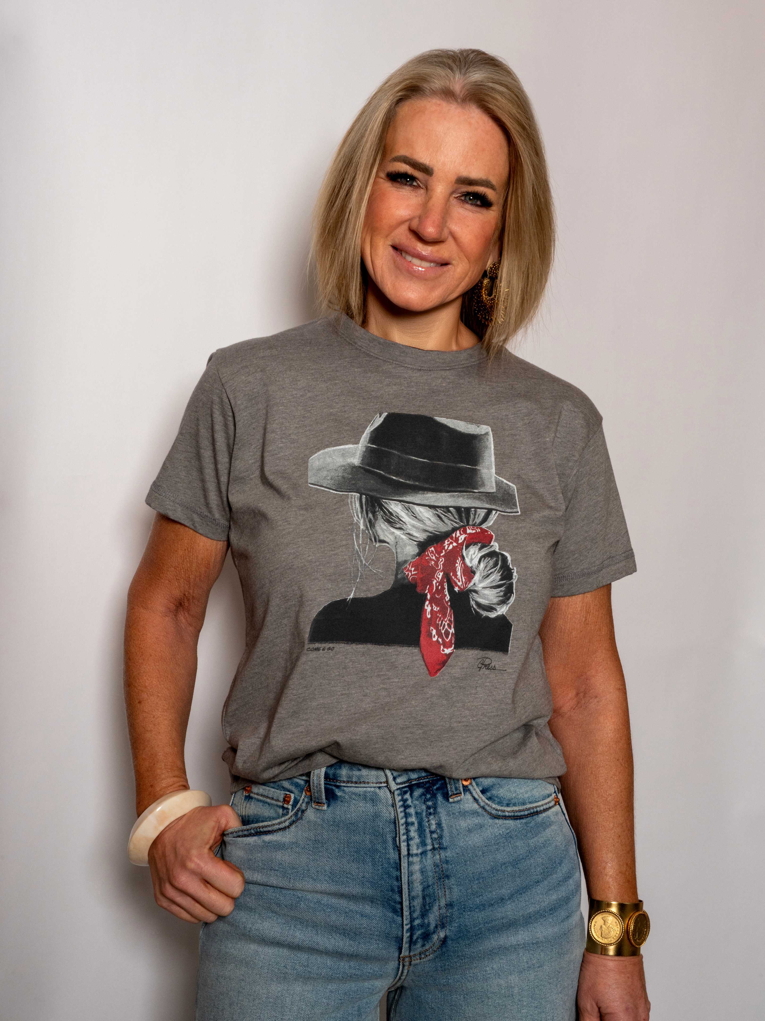 - We are all just coming and going from here to there! Take your casual look to the next level with our worn grey tee. Pair it with your favorite jeans and leave time in your day for everyone to stop and ask where you got your shirt!