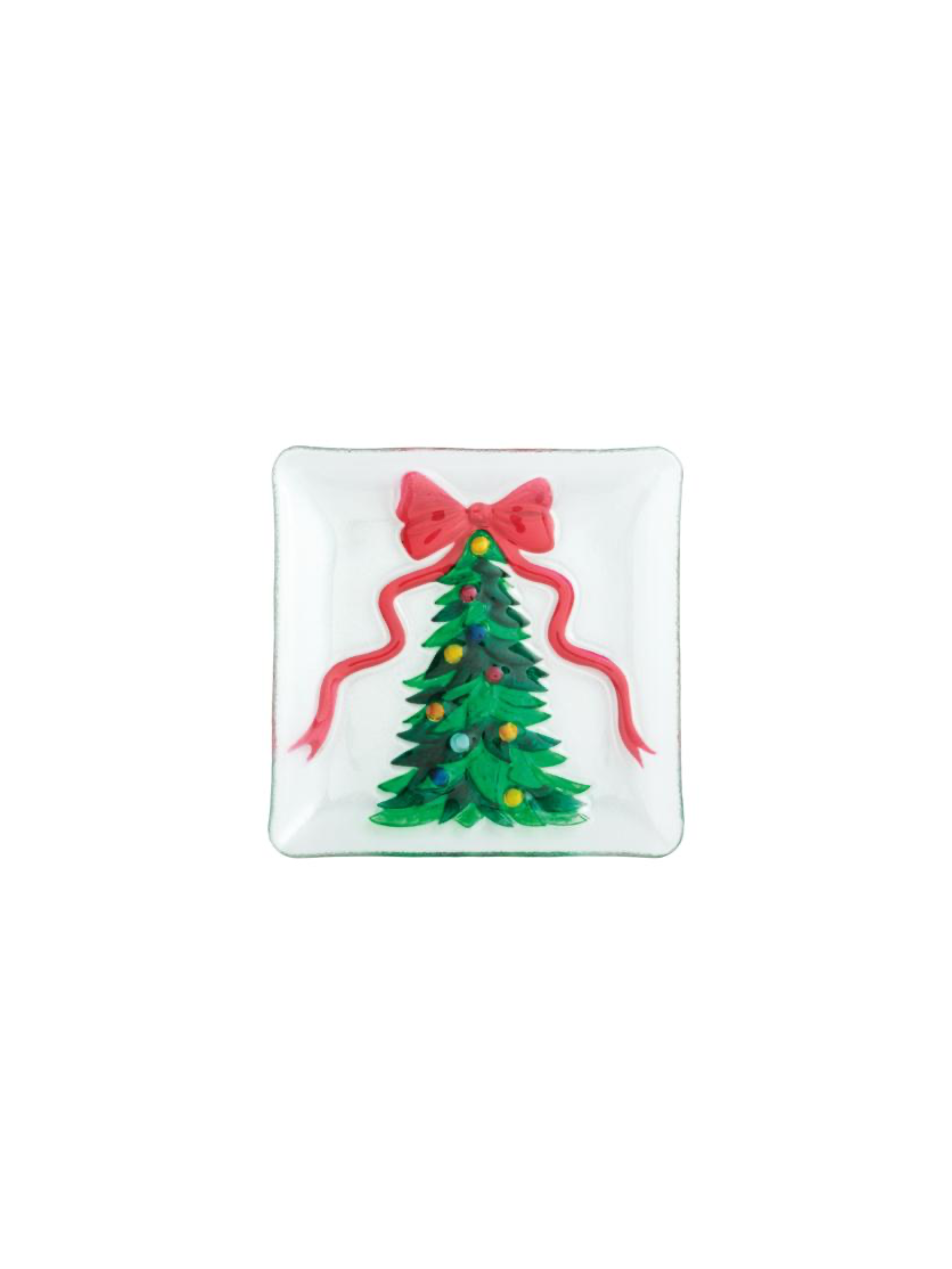 he plate measures 8" x 8", making it a perfect size for serving holiday treats or as a decorative centerpiece. Made from high-quality fused glass, it offers both durability and elegance, ensuring it will be a cherished part of your holiday celebrations for years to come.